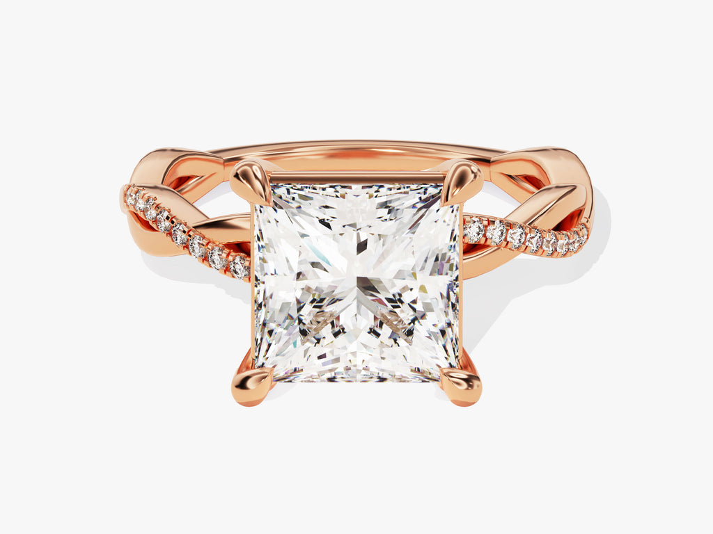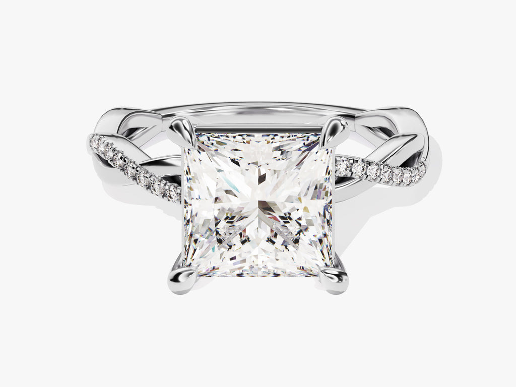Princess Twisted Moissanite Engagement Ring with Pave Set Side Stones (3.00 CT)