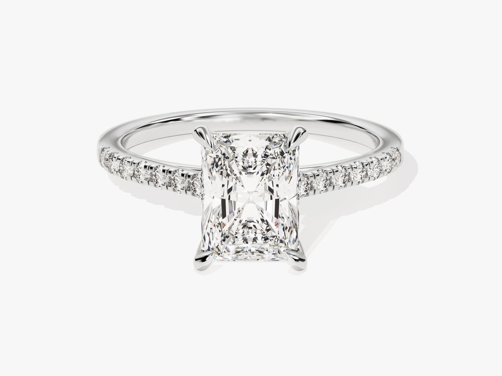 Radiant Cut Moissanite Engagement Ring with Pave Set Side Stones (3.00 CT)