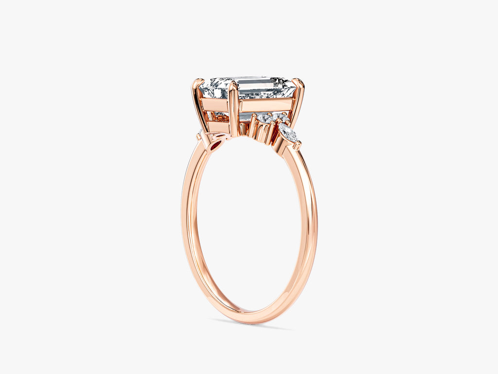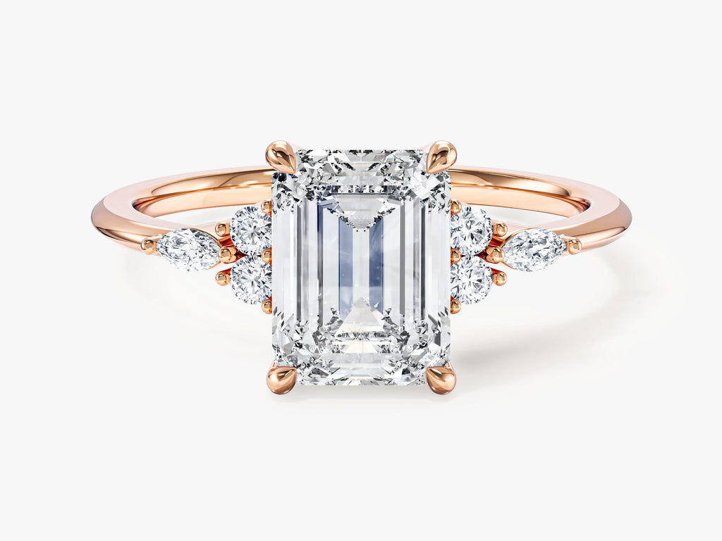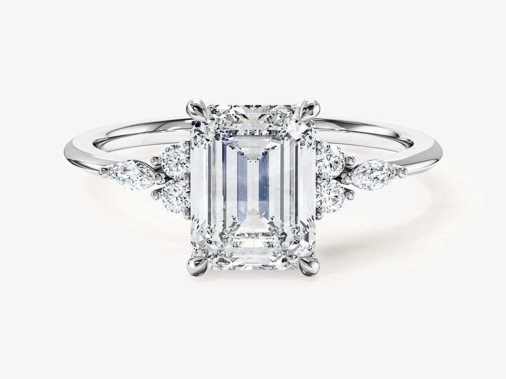 Round and Marquise Cluster Emerald Lab Grown Diamond Engagement Ring makes a bold and impactful statement with a total carat weight of 2.00 ct. It seamlessly blends the timeless allure of traditional designs with the contemporary chic of a cluster setting, making it a distinctive and eye-catching representation of enduring love.