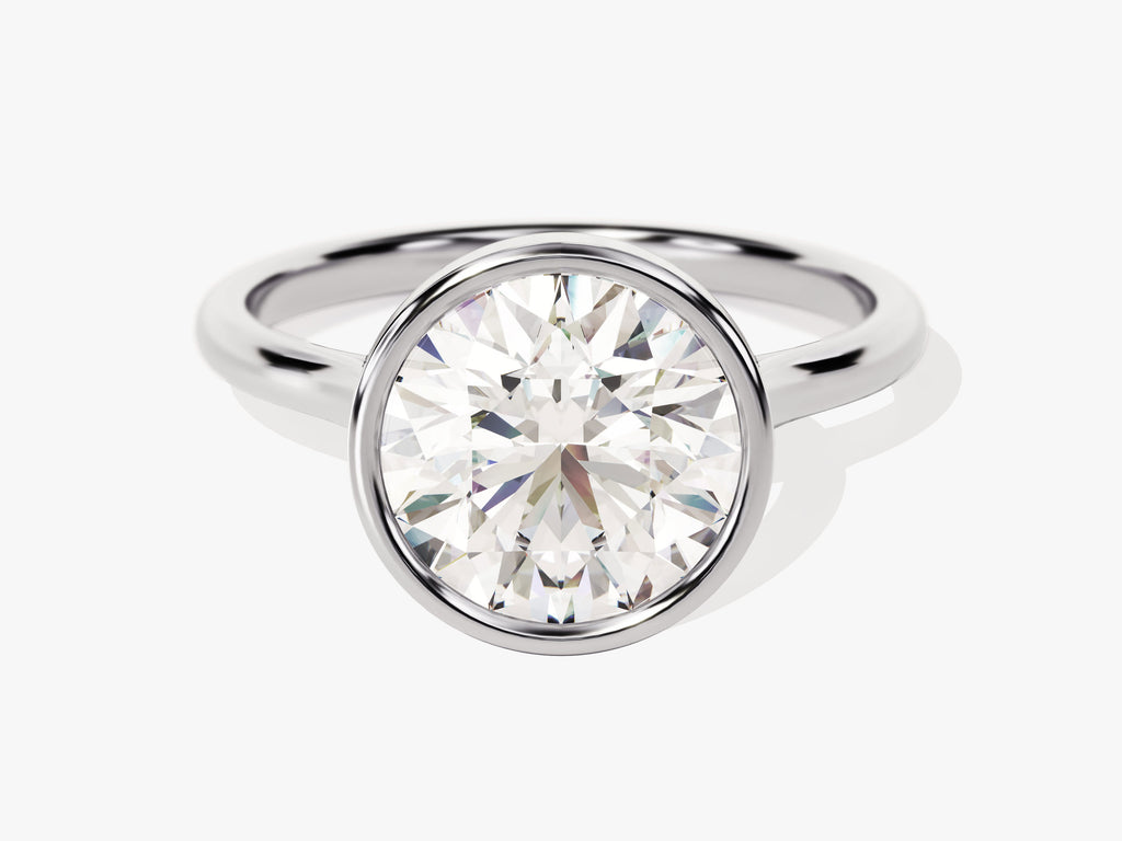 Round Bezel Solitaire Moissanite Engagement Ring (3.00 CT)