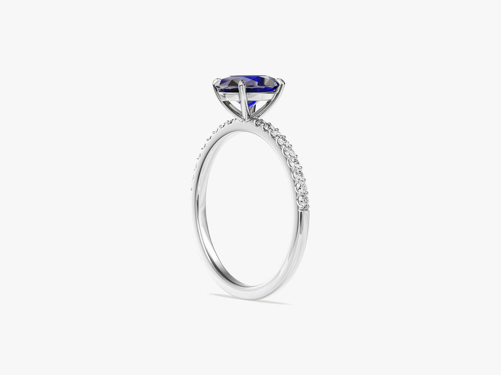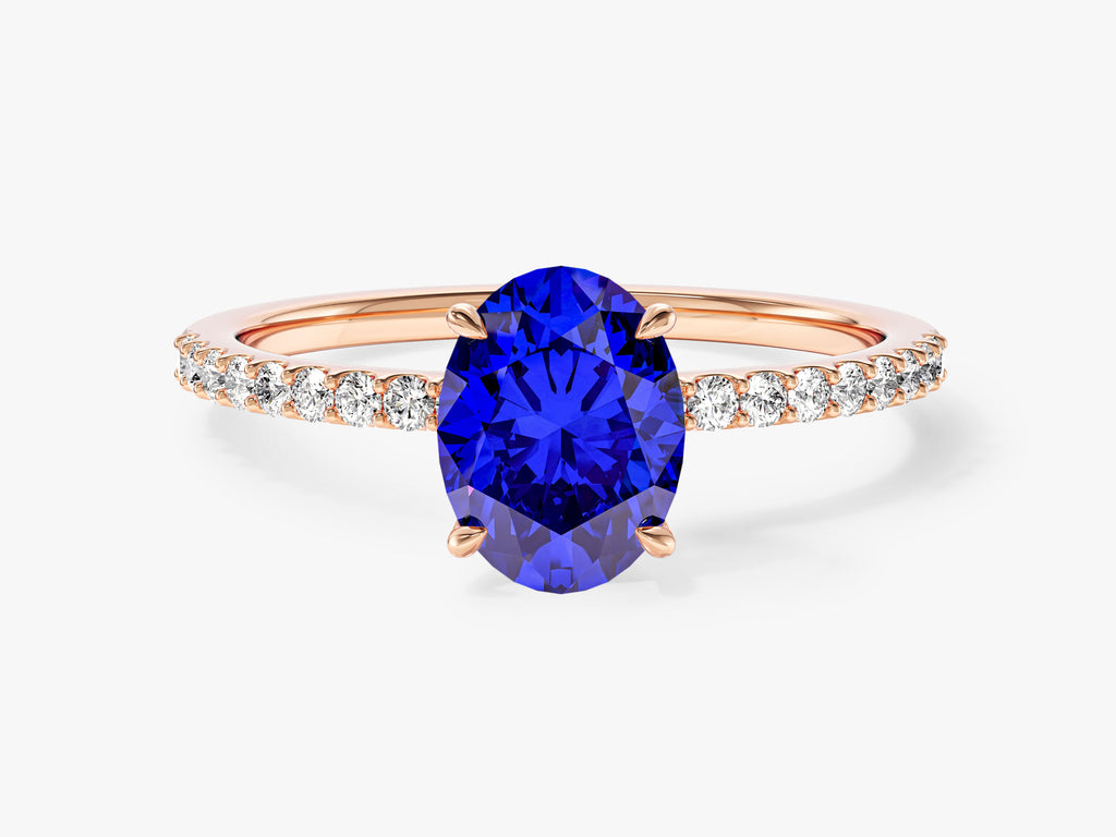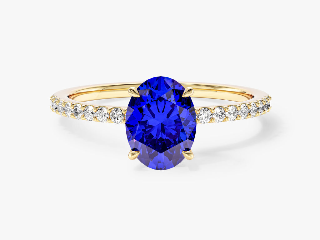 Exquisite and graceful, this engagement ring in 14k gold features brilliant side stones on its band to complement your oval-shaped center stone.