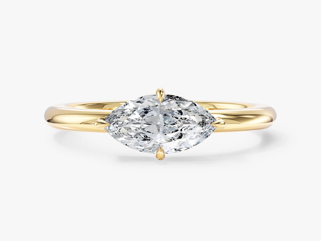 Clean, contemporary, and effortlessly stylish, this east-west solitaire brings a fresh perspective to a classic shape. The horizontally set center stone creates a sleek, elongated look that feels both minimal and distinctive. Simple yet striking, it’s the perfect choice for those who appreciate understated design with a modern twist.
