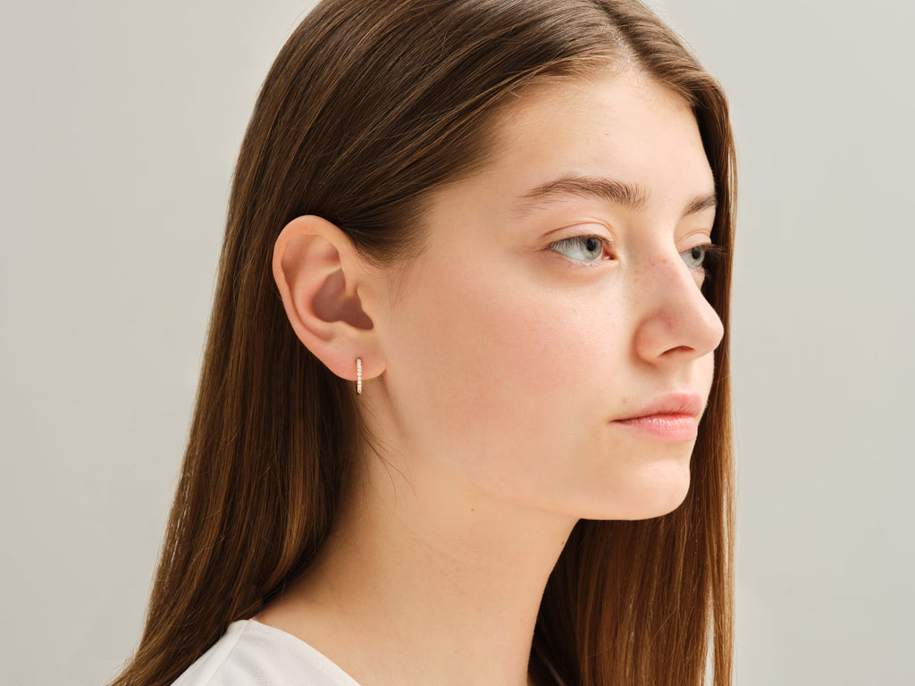 The perfect pair of huggies - these hoops are made to last with a quality solid gold, gold vermeil or sterling silver hoop and securely set diamond - moissanite stones. The look is completely timeless and minimalist, making them go-to earrings for daily wear. They feature a classic design that can easily be dressed up or down for all occasions. Whether you like your jewelry everyday minimal, or are looking for that special piece to wear for the evening, these dainty huggies will make a perfect addition to any jewelry collection. Each hoop is set with 0.15ct of totaling to 0.30ct of gemstone for the pair.