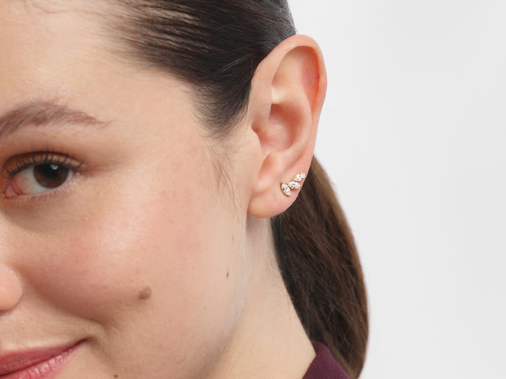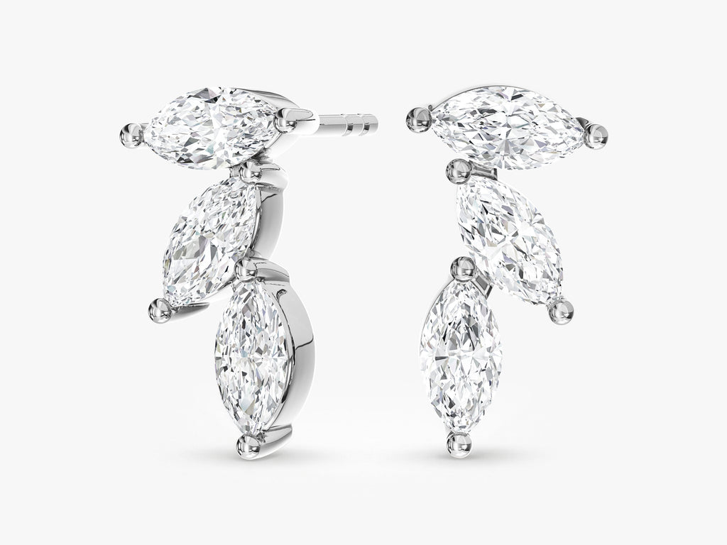 Trio Marquise Stone Earrings feature three delicately aligned marquise-cut stones, creating a sleek and elongated silhouette. Designed to maximize brilliance with a balanced, sculptural look, they offer refined sparkle with a modern edge. Elegant yet distinctive, they elevate both everyday styling and special occasions.